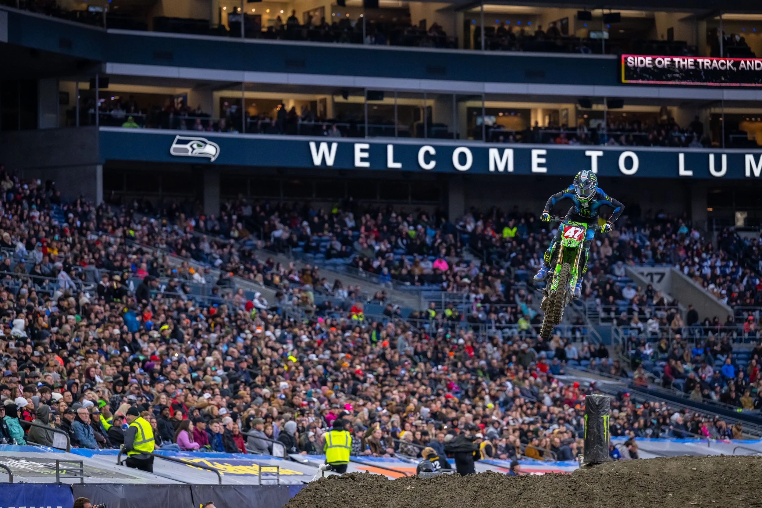 Chase Sexton led much of the race and put on an incredible final surge; he missed the win by less than one second to earn the runner-up spot. Team Honda HRC's Jett Lawrence pushed a strong pace early but a crash with Webb put him back; he finished in third place. In the Western Regional 250SX Class’ return to racing, Washington-native Monster Energy Pro Circuit Kawasaki's Levi Kitchen ran away with a huge win in what is his hometown Supercross.
