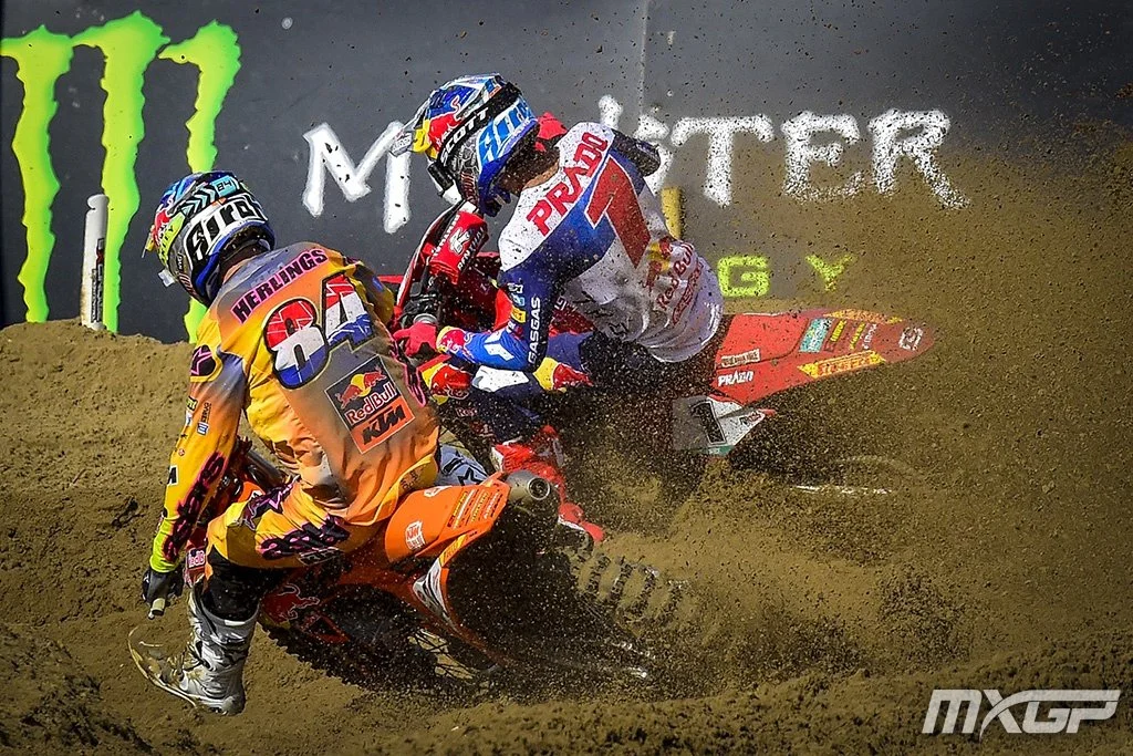 The MXGP class was expected to be a battle of the sand masters, between Red Bull GASGAS Factory Racing’s reigning World Champion Jorge Prado and Red Bull KTM Factory Racing’s record GP winner Jeffrey Herlings. And it certainly delivered that battle! With some incredible riding, Herlings delivered a knockout punch to record a perfect 1-1 day, make a statement about his speed in the soft stuff, and close in further on the World Championship lead!